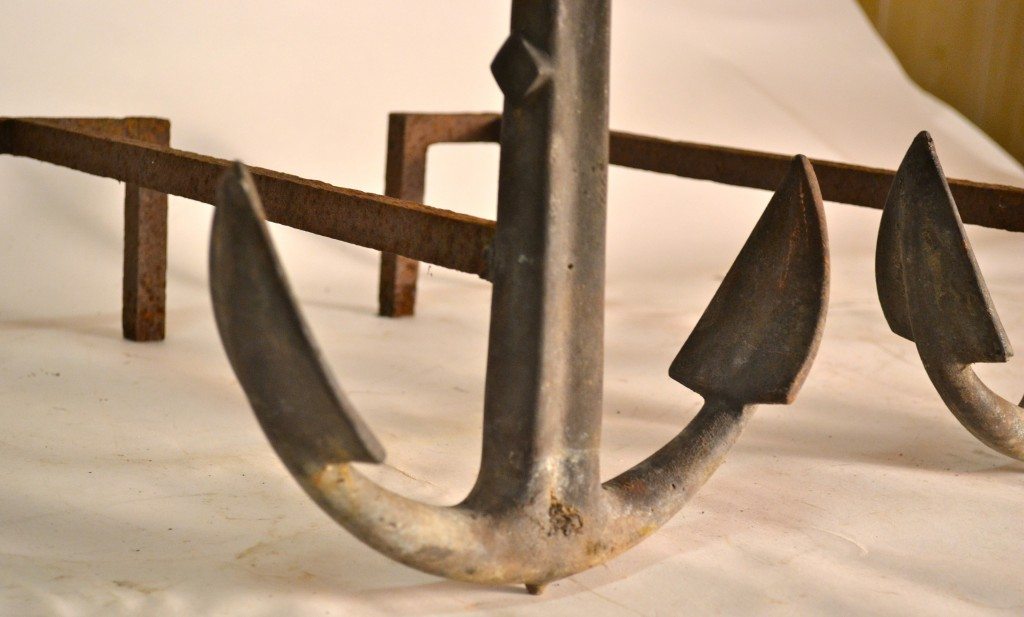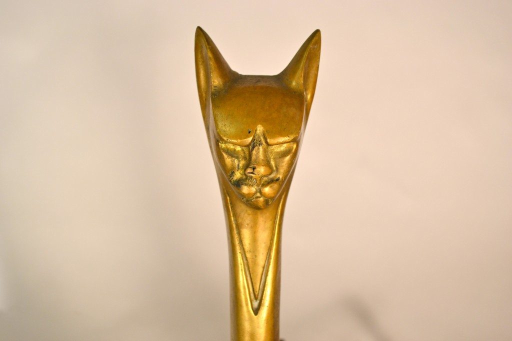 Stylized Cat figure Andirons. Solid brass, original condition.