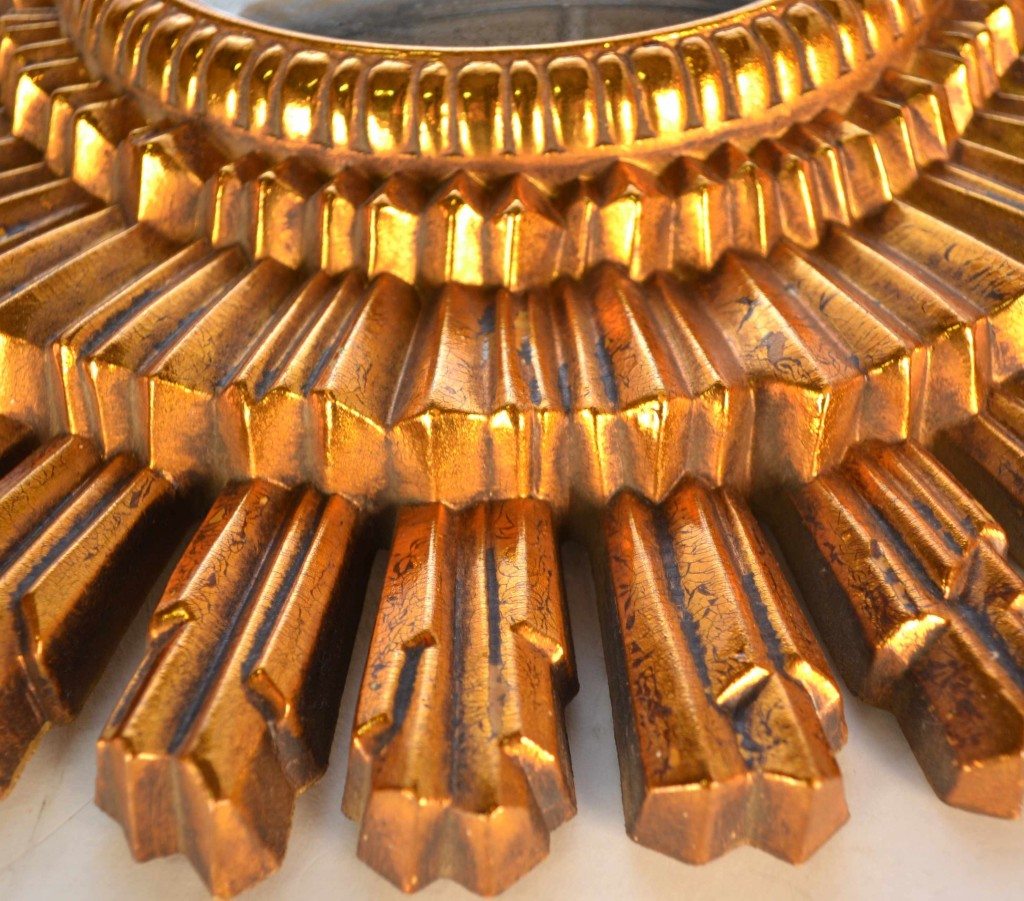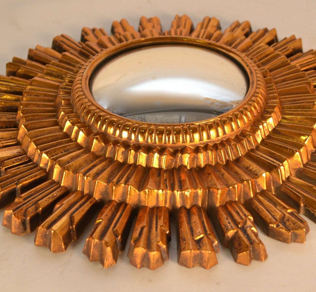 Diminutive gold frame mirror convex bulls eye mirror 15”- Dia Plastique frame.