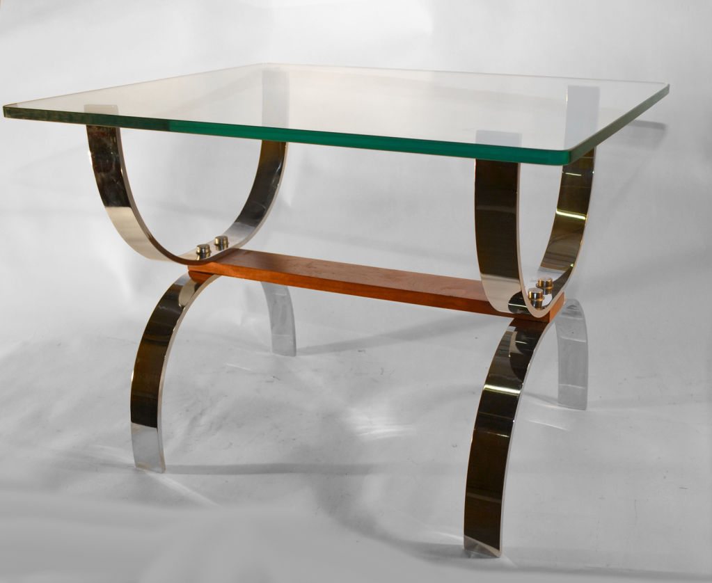 | Polished Steel Brass and Glass Coffee Table after Jansen |